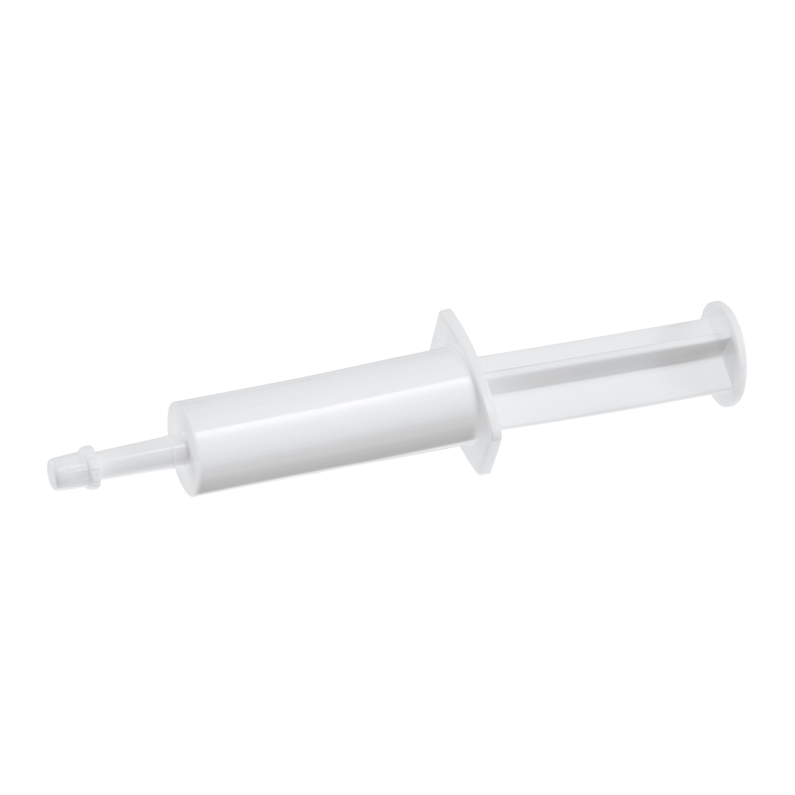 Do dozowania past doustnie. Średnica końcówki wprowadzającej 4,5 mm. Krótka nakrętka. Materiał: PE o niskiej gęstości, nietoksyczny, gwarantujący dobrą szczelność.