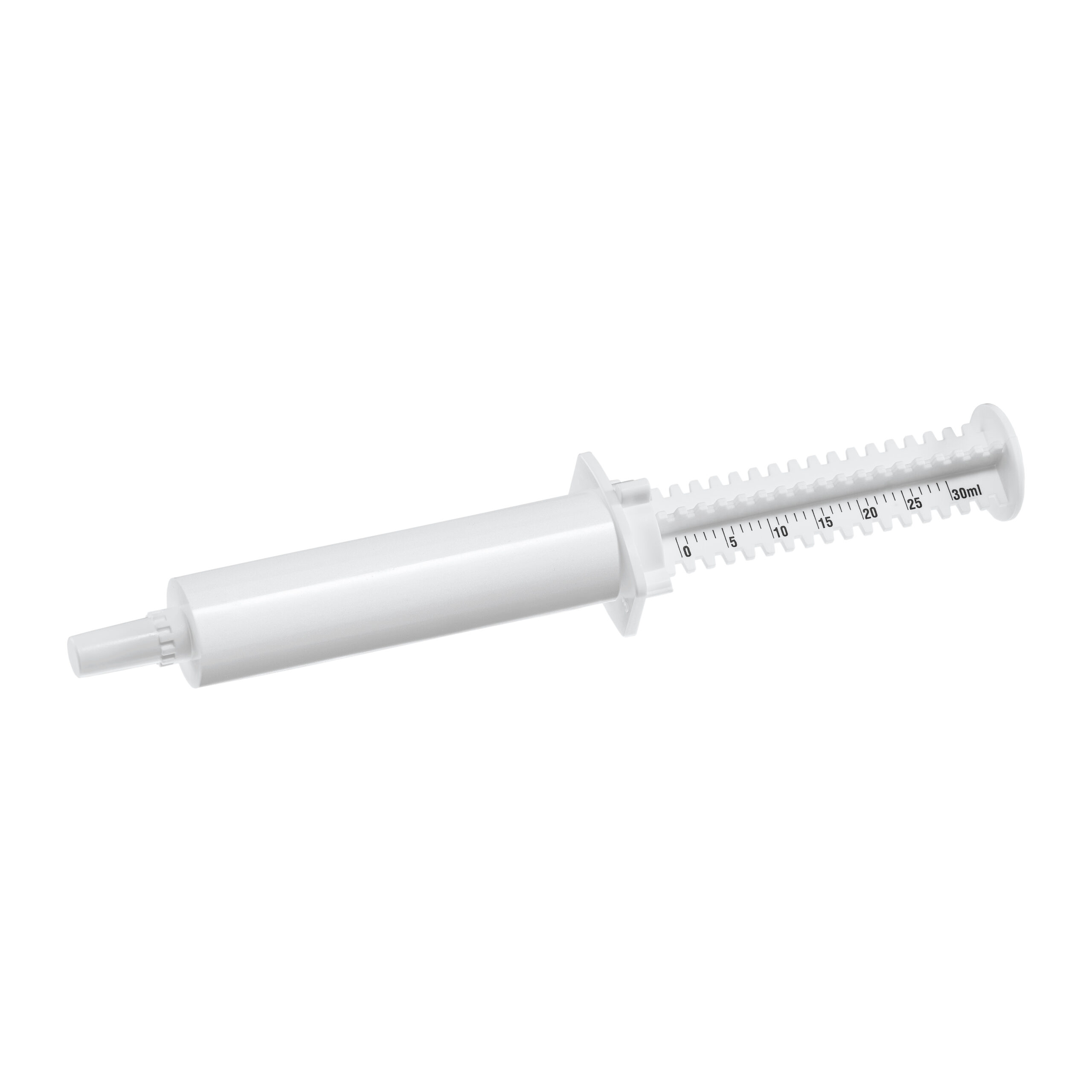Do domacicznego dozowania produktów. Średnica końcówki wprowadzającej 6 mm. Materiał: PE o niskiej gęstości, nietoksyczny, gwarantujący dobrą szczelność. Zamknięcie z blokadą. Tłok umożliwiający kilkukrotne dozowanie.