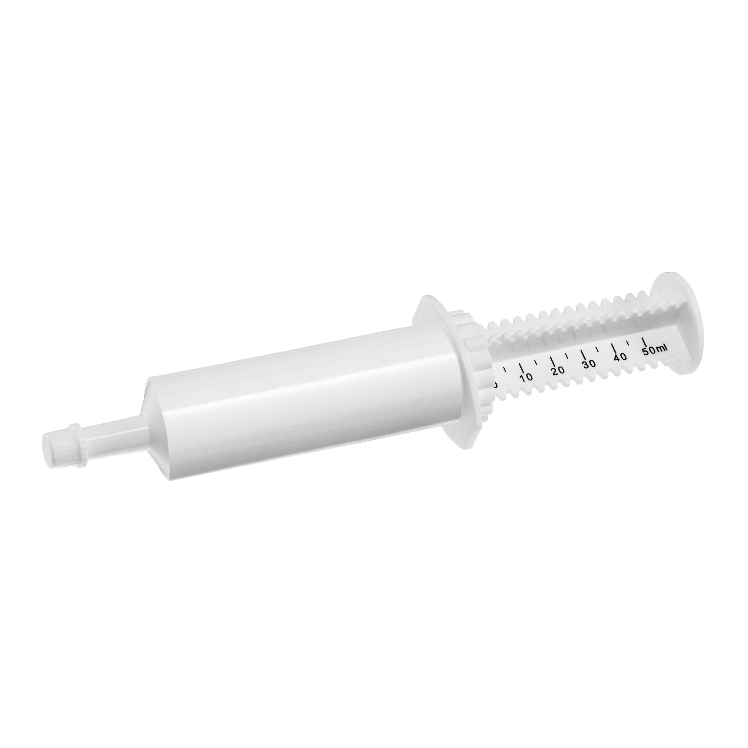 Do dozowania past doustnie. Średnica końcówki wprowadzającej 8 mm. Krótka nakrętka. Materiał: PE o wysokiej gęstości, nietoksyczny, gwarantujący dobrą szczelność. Zamknięcie z blokadą. Tłok umożliwiający kilkukrotne dozowanie.