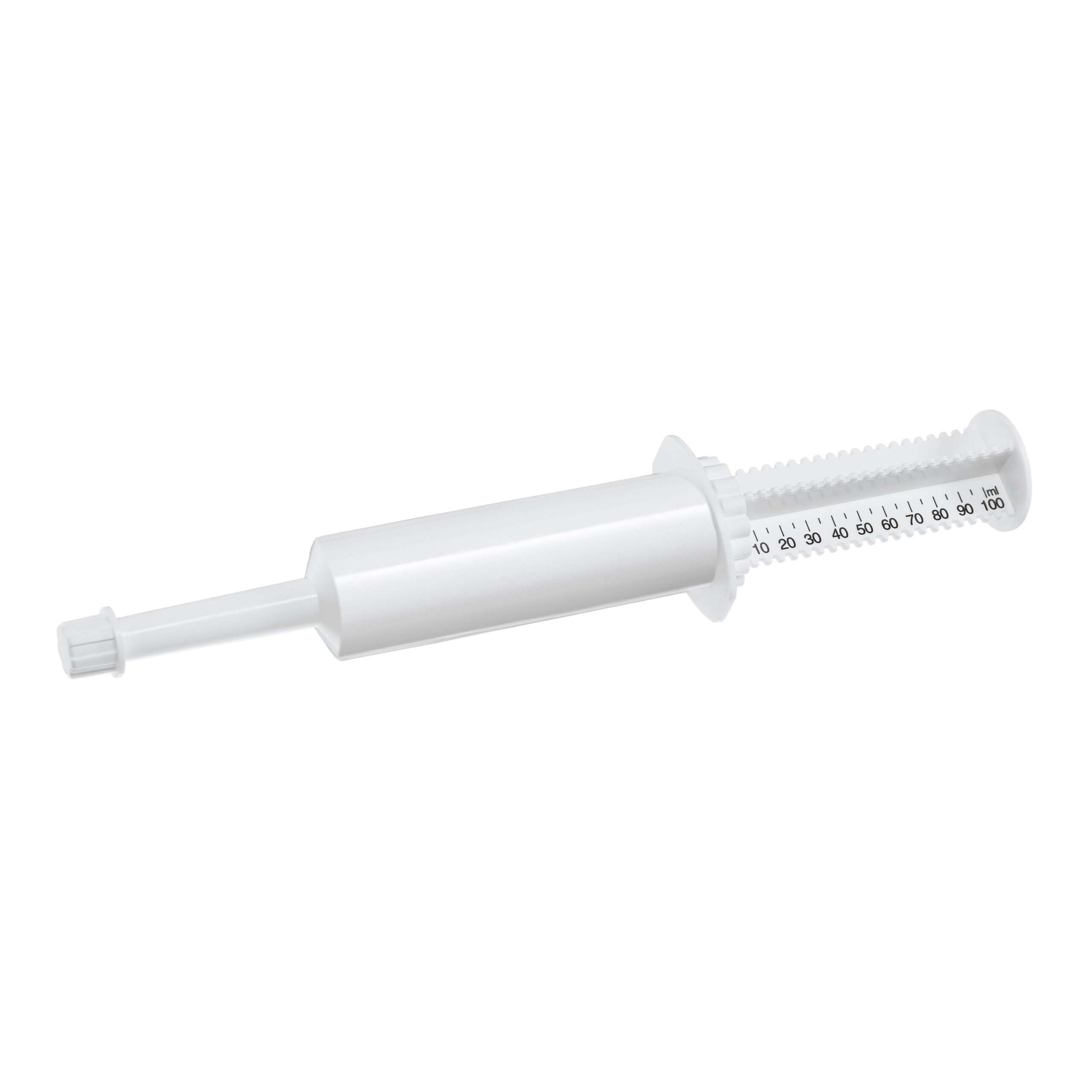 Średnica końcówki wprowadzającej 9 mm. Materiał: PE o wysokiej gęstości, nietoksyczny, gwarantujący dobrą szczelność. Zamknięcie z blokadą. Tłok umożliwiający kilkukrotne dozowanie.